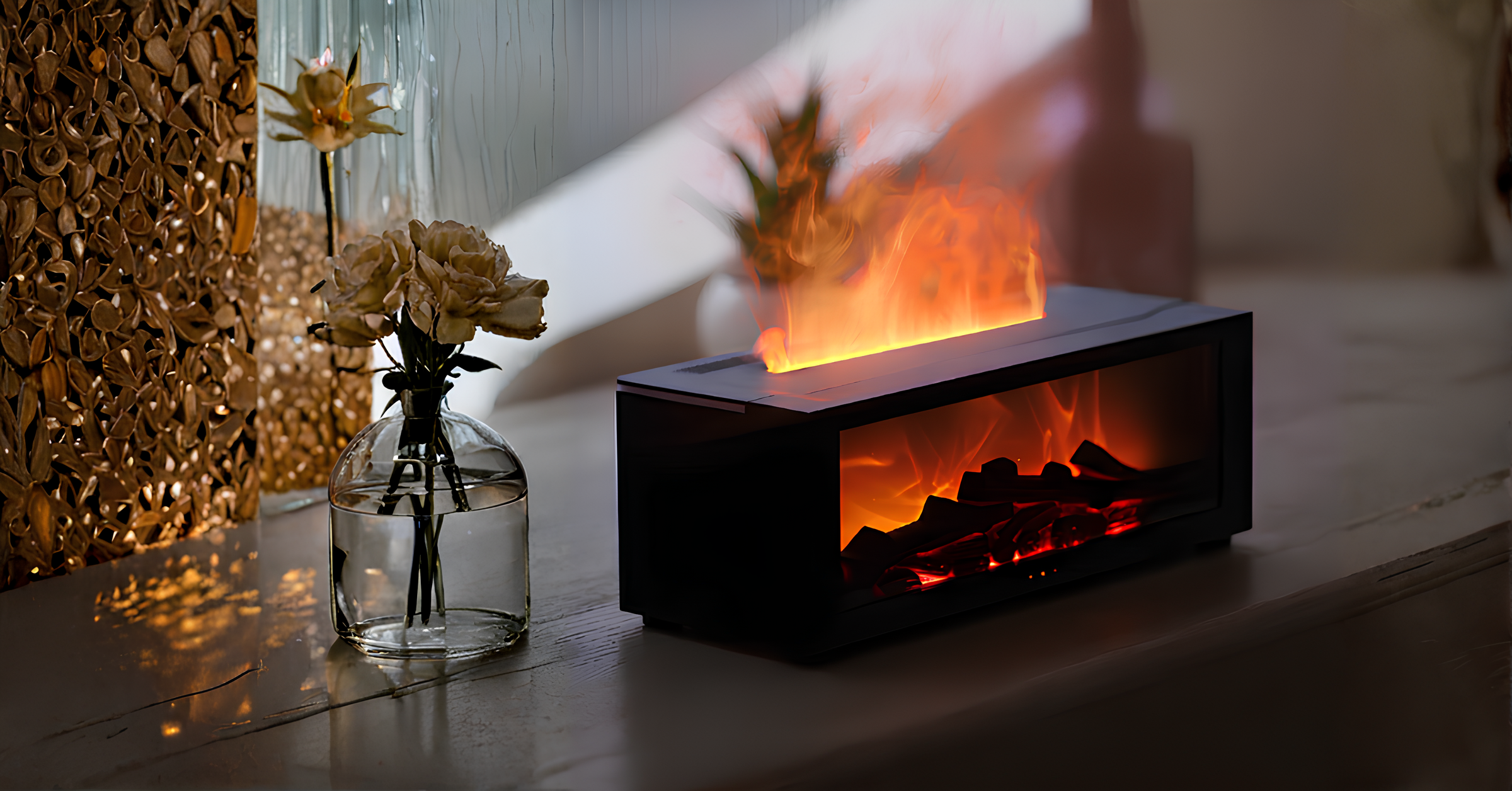 Transformez votre espace en un havre de paix avec l'effet flamme d'un feu de cheminée hyper-réaliste. Chaleur visuelle, arômes envoûtants : un design pur qui crée une atmosphère cosy et relaxante.